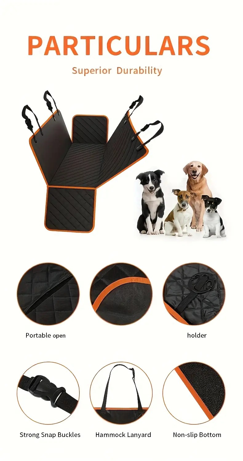 | Pet Car Seat Cover Eco-Friendly Waterproof Non Slip Anti Scratch Cotton Filled Oxford Fabric Hammock Style Universal Fit for Dog | |